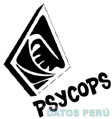 El logotipo conformado por la denominación PSYCOPS escrita en letras características sobre la cual aparece una figura cuadrilateral que contiene una serie de figuras irregulares; conforme al modelo adjunto