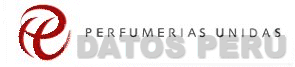 El logotipo conformado por la denominación PERFUMERIAS UNIDAS escrita en letras características y en el extremo izquierdo se aprecia una figura irregular, en la combinación de colores marrón y negro; conforme al modelo adjunto