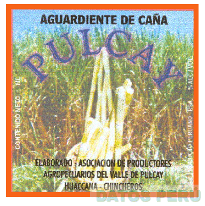 EL LOGOTIPO CUADRANGULAR CONSTITUIDO POR LA DENOMINACION AGUARDIENTE DE CAÑA PULCAY ESCRITA EN LETRAS CARACTERISTICAS SOBREPUESTA A UN FONDO CONFORMADO POR PLANTACIONES DE CAÑAVERAL; ACOMPAÑADO DE LEYENDAS ALUSIVAS AL PRODUCTO, TODO EN LOS COLORES VERDE, AMARILLO, CELESTE, AZUL, ROJO Y NEGRO; CONFORME AL MODELO ADJUNTO