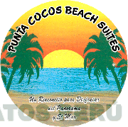 El logotipo conformado por un círculo donde se aprecia una playa con palmeras y el sol ocultándose en el horizonte; sobre esta figura la denominación PUNTA COCOS BEACH SUITES y la frase UN RINCONCITO PARA DISFRUTAR DEL PANORAMA Y EL MAR, todo en los colores amarillo en diferentes tonalidades, celeste, verde, anaranjado en diferentes tonalidades, marrón, beige, azul y negro; conforme al modelo adjunto