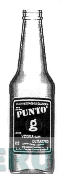 El logotipo conformado por la figura de una botella pavonada en cuya etiqueta de fondo de color negro y marco plomo se aprecia la denominación PUNTO G escrita en letras características de color blanco; la letra G se encuentra al interior de un círculo rojo; debajo se aprecia la denominación VODKA CON DURAZNO escrita en letras características de color plomo; conforme al modelo adjunto, sin reivindicar la figura de la botella
