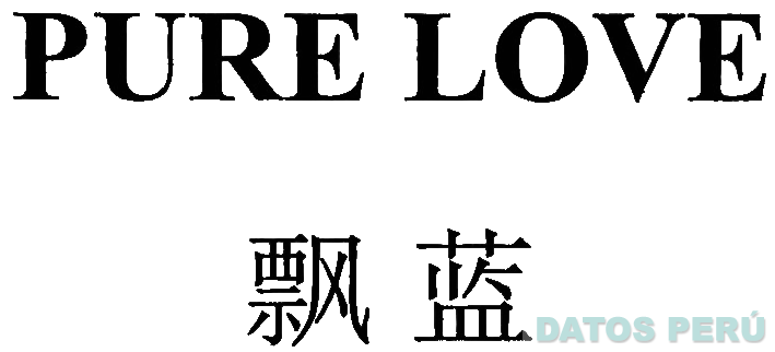 El logotipo conformado por la denominación PURE LOVE escrita en letras características mayúsculas, en la parte inferior se aprecia caracteres chinos; conforme al modelo adjunto
