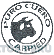 La denominación PURO CUERO CARPIED y logotipo (se revindica colores), conforme al modelo adjunto.