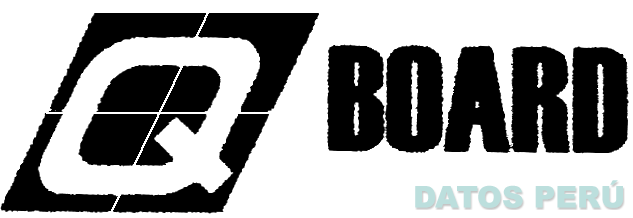 El logotipo conformado por la denominación QBOARD, en donde la letra Q está al interior de una figura irregular que contiene además dos líneas cruzadas, en los colores blanco y negro; conforme al modelo adjunto