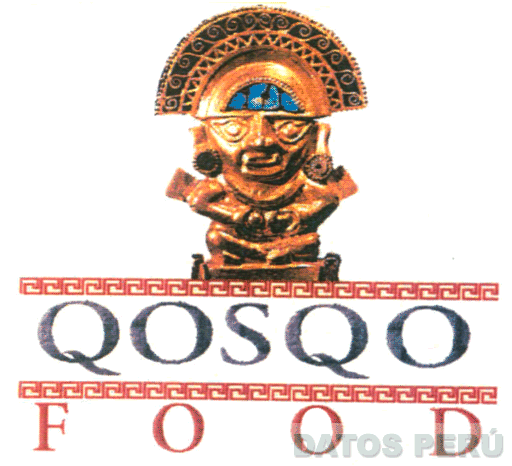 EL LOGOTIPO CONSTITUIDO POR LA DENOMINACIÓN QOSQO FOOD ESCRITA EN LETRAS CARACTERÍSTICAS EN LOS COLORES GRIS Y ROJO RESPECTIVAMENTE ENMARCADAS ENTRE LÍNEAS DE COLOR ROJO SOBRE LAS QUE SE ENCUENTRA LA IMAGEN REPRESENTATIVA DEL DIOS NAYLAMP, PARTE SUPERIOR DEL CUCHILLO CEREMONIAL TUMI EN COLOR DORADO Y CELESTE; CONFORME AL MODELO ADJUNTO