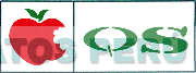 El logotipo rectangular seccionado en dos partes, apreciándose en la primera la figura estilizada de una manzana mordida y en la segunda las letras Q S escritas en forma característica, en los colores verde, rojo, negro y blanco; conforme al modelo adjunto