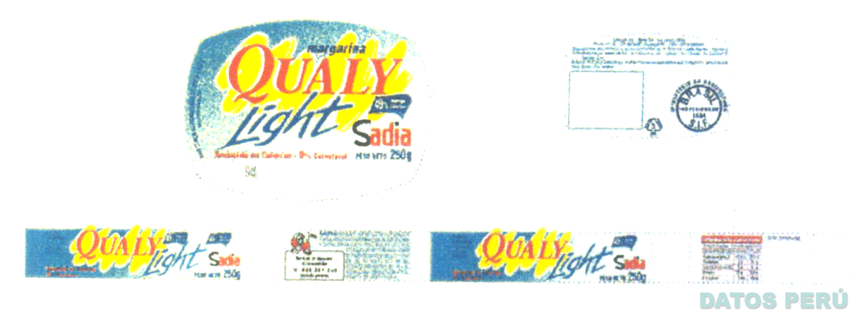 EL DISEÑO DE EMPAQUE QUE CONTIENE LA DENOMINACION QUALY LIGHT SADIA ESCRITA EN LETRAS CARACTERISTICAS, TODO EN LOS COLORES AZUL, ROJO, AMARILLO, BLANCO Y NEGRO; CONFORME AL FACSIMIL ADJUNTO