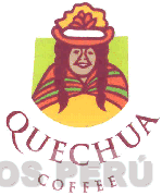 El logotipo conformado por la denominación QUECHUA COFFEE escrita en letras características, con la representación estilizada de una mujer con rasgos y vestimenta indígena, todo en la combinación de colores anaranjado, amarillo, blanco, verde, marrón oscuro y claro; conforme al modelo adjunto.