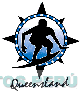 El logotipo conformado por el diseño estilizado de un surfista dentro de una figura circular estilizada y la denominación QUEENSLAND escrita en letras características; sin reivindicar colores; conforme al modelo adjunto.