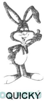 LA FIGURA HUMANIZADA DE UN CONEJO SONRIENTE, CON EL BRAZO IZQUIERDO LEVANTADO Y EL DEDO EN SEÑAL DE CONFORMIDAD Y LA MANO DERECHA APOYADA EN SU CADERA; DEBAJO DE LA CUAL APARECE LA DENOMINACION QUICKY; TODO CONFORME AL MODELO ADJUNTO,