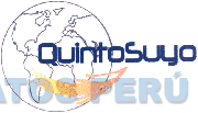La denominación QUINTOSUYO escrita en letras características, en la parte inferior se aprecia la figura de una flecha en forma irregular, todo sobre la representación de un globo terráqueo, en los colores azul, amarillo, negro, anaranjado y gris; conforme al modelo adjunto