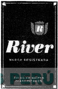 El logotipo conformado por la denominación RIVER escrita en letras características, la letra R dentro de la figura de un escudo, y demás leyendas alusivas al producto (sin reivindicar); todo dentro de un rectángulo, en cuyas esquinas se aprecian un corazón, un coco, un trébol y una espada de naipes; sin reivindicar colores; conforme al modelo adjunto