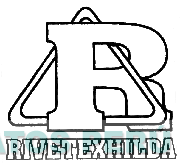 La denominación RIVETEXHILDA y el logotipo constituido por la letra R escrita en forma característica cruzada con un triángulo equilátero, en los colores blanco y negro; conforme al modelo adjunto