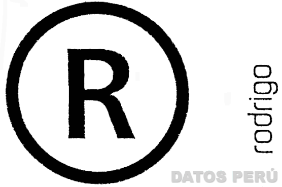 La denominación RODRIGO escrita en letras características en forma vertical, la letra R dentro de un círculo en mayor tamaño; conforme al modelo adjunto