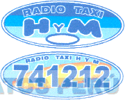 La denominación RADIO TAXI H y M escrita en letras características dispuesta en dos líneas y debajo una figura ovalada, todo dentro de una figura elíptica cuyo fondo está conformado por cuatro franjas paralelas, en los colores azul, cian, azul cielo y blanco; debajo la denominación RADIO TAXI H y M 741212 escrita en letras y números característicos, dispuesto en dos líneas dentro de una figura elíptica cuyo fondo está conformado por una figura irregular, en los colores celeste, azul, anaranjado y amarillo; conforme al modelo adjunto