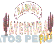 La denominación RANCHO AVENTURA PARK escrita en letras características, donde el término RANCHO se encuentra dentro de una figura irregular y a ambos lados se aprecia la representación de dos cactus, todo en los colores amarillo, verde y anaranjado; conforme al modelo adjunto