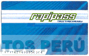 La representación estilizada de una tarjeta conteniendo la denominación RAPIPASS, debajo la frase TARJETA RECARGABLE, ambas escritas en letras características sobre una franja horizontal, en la parte inferior izquierda, diversas cifras; todo en los colores verde, azul en diversas tonalidades y blanco; conforme al modelo adjunto.