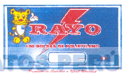 La figura rectangular de fondo color azul, conteniendo la denominación RAYO escrita en letras características de color rojo, con la representación de un rayo de color rojo con un tigrillo ubicado en el lado izquierdo superior, en los colores negro y amarillo; conforme al modelo adjunto