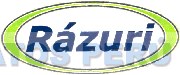 La denominación RÁZURI escrita en letras características, dentro de una figura ovoidal en la combinación de colores azul y verde; conforme al modelo adjunto