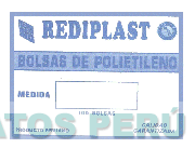 La etiqueta conformada por la figura de un cuadro en cuyo interior se aprecia la denominación REDIPLAST escrita en letras características y al lado derecho la perspectiva de un rombo con las letras RDP y al lado izquierdo un círculo en cuyo borde aparece la denominación LIMPIEZA ES SALUD y dentro las letras RDP y debajo leyendas alusivas al producto, en los colores azul y blanco; conforme al modelo adjunto