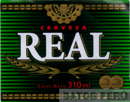 La etiqueta conteniendo la denominación REAL en letras características, en la parte superior el collar del señor de Sipán, dos medallas y maníes, y en la parte inferior dos espigas cruzadas; en la combinación de colores verde, negro, dorado claro, dorado oscuro y rojo, conforme al modelo adjunto