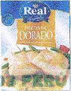 La denominación REAL CONGELADOS FILETES DE DORADO y logotipo (se reivindica colores), conforme al modelo