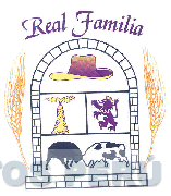 El logotipo conformado por la denominación REAL FAMILIA escrita en letras características debajo de la cual se aprecia la representación estilizada de un arco dividido en cuatro segmentos, en el segmento superior se aprecia la figura estilizada de un sombrero, en los segmentos intermedios las representaciones de un volcán y un león y en el segmento inferior las figuras estilizadas de dos toros peleando, asimismo en los extremos del arco se aprecia la representación estilizada de una espiga, todo en la combinación de colores amarillo, morado, anaranjado, negro y blanco; conforme al modelo adjunto
