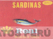 La denominación REAL SARDINAS EN SALSA DE TOMATE y logotipo (se reivindica colores), conforme al modelo