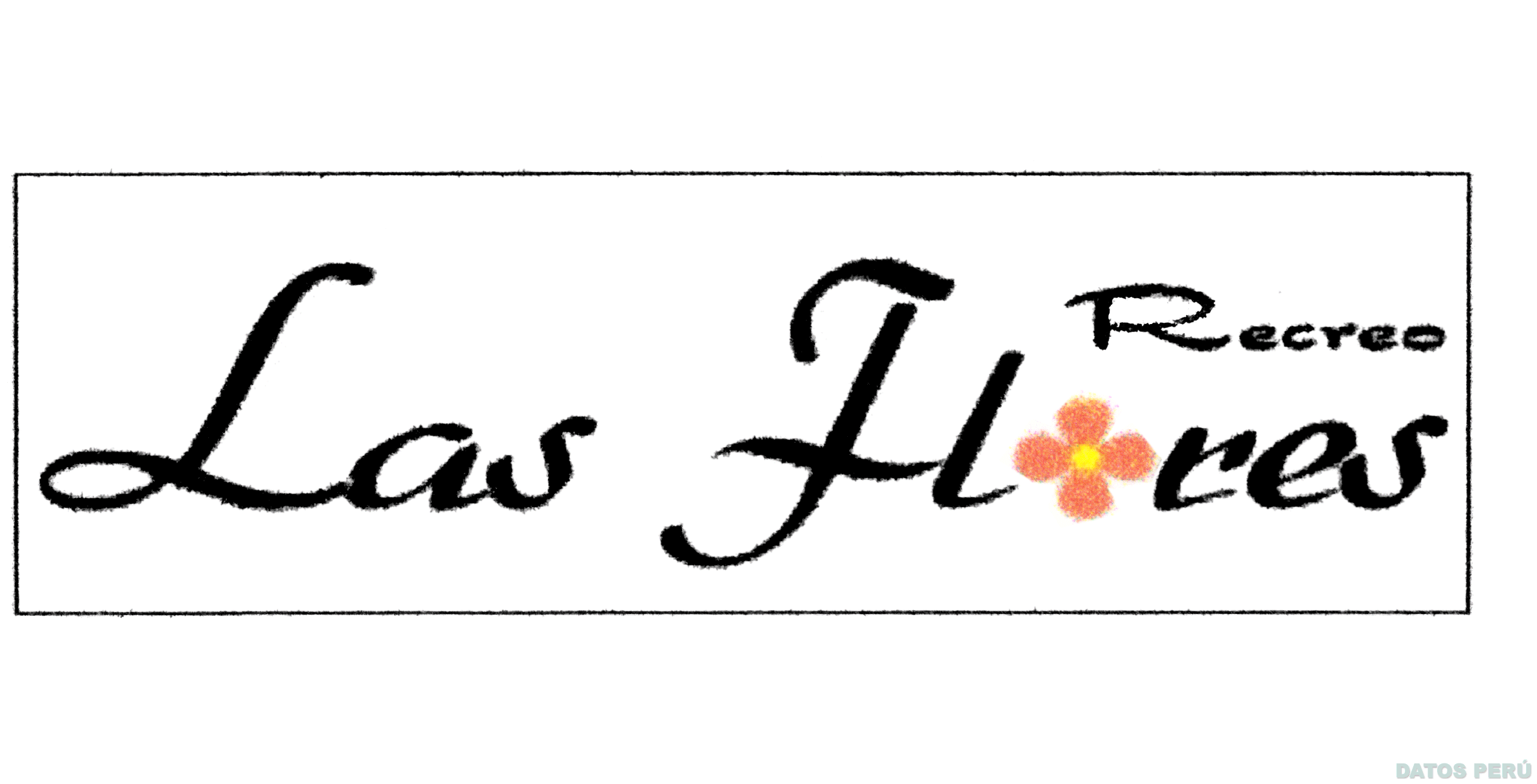 El logotipo conformado por la denominación RECREO LAS FLORES escrita en letras características, en donde la letra O de la palabra FLORES se encuentra representada por una flor, todo dentro de una figura rectangular y en la combinación de colores anaranjado, amarillo y negro; conforme al modelo adjunto
