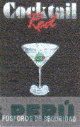 La etiqueta conteniendo la denominación RED COCKTAIL escrita en letras características, debajo el diseño estilizado de una copa con la representación de licor y la figura de una aceituna y en la parte inferior la denominación FOSFOROS DE SEGURIDAD, todo en los colores rojo, verde, plomo, blanco y negro; conforme al modelo adjunto