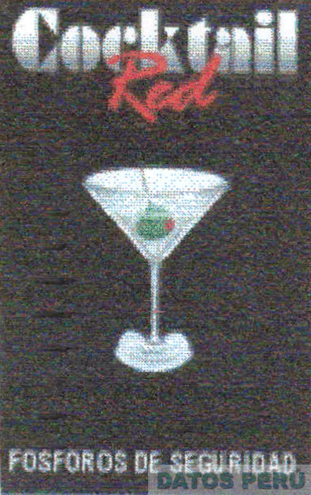 La etiqueta conteniendo la denominación RED COCKTAIL escrita en letras características, debajo el diseño estilizado de una copa con la representación de licor y la figura de una aceituna y en la parte inferior la denominación FOSFOROS DE SEGURIDAD, todo en los colores rojo, verde, plomo, blanco y negro; conforme al modelo adjunto