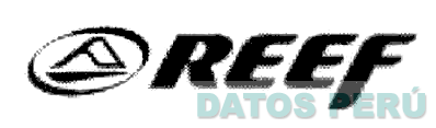 EL LOGOTIPO CONFORMADO POR LA DENOMINACION REEF ESCRITA EN LETRAS CARACTERISTICAS EN FORMA CURSIVA DE COLOR NEGRO A CUYO COSTADO IZQUIERDO SE ENCUENTRA UNA ESFERA OVOIDAL EN CUYO INTERIOR SE ENCUENTRA LA FIGURA DE UN TRIANGULO ESTILIZADO; CONFORME AL MODELO ADJUNTO