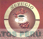 El logotipo conformado por la figura del mapa del Perú y como fondo se aprecian granos de café, en el medio una taza sobre un plato y en el centro la denominación REFUGIO escrita en letras características; todo al interior de una figura circular dividida en dos, en cuyo interior se aprecia la denominación REFUGIO y en la parte inferior de la figura circular se aprecia la denominación AGROIND. FERNANDEZ E.I.R.L. sin reivindicar, y como base se aprecian granos de café; todo en los colores marrón y beige; conforme al modelo adjunto