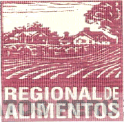 El logotipo conformado por la denominación REGIONAL DE ALIMENTOS escrita en letras características y en la parte superior se aprecia la representación de una hacienda conformada por casas, un árbol, cielo, nubes y un jardín dividida en surcos; todo en los colores guinda y beige; conforme al modelo adjunto
