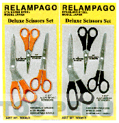 La denominación RELAMPAGO DELUXE SCISSORS SET y logotipo (se reivindica colores y no se reivindica las denominaciones DELUXE SCISSORS SET y figura de empaque), conforme al modelo adjunto
