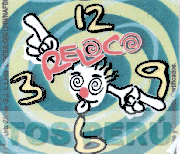 El logotipo conformado por la denominación RELOCO escrita en letras características y la figura caricaturizada de un rostro y dos brazos dentro de la representación estilizada de un reloj con un fondo espiral, todo en los colores verde oscuro, verde claro, blanco, rojo, negro y crema; conforme al modelo adjunto