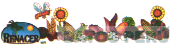 La etiqueta conteniendo la denominación RENACER, la representación de figuras de palmera, sol, abeja, girasol, trigo, tomate, zanahoria, choclo, nuez, papa y otros en la combinación de colores cepia, negro, verde, azul cyan, celeste, amarillo, rojo, naranja, blanco, guinda, conforme al modelo adjunto