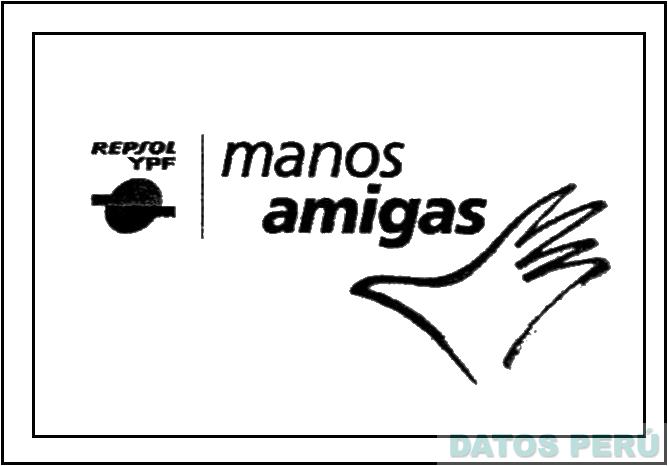 La denominación MANOS AMIGAS escrita en letras características en azul pantone 282 c sostenida con una mano estilizada en color anaranjado pantone 151 c y en unión con el signo REPSOL YPF, todo sobre un fondo de color blanco; conforme al modelo adjunto