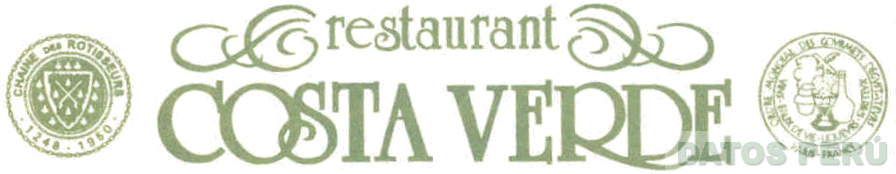 La denominación RESTAURANT COSTA VERDE escrita en letras características, donde la denominación RESTAURANT se encuentra entre dos figuras irregulares y la denominación COSTA VERDE se encuentra entre dos medallas conteniendo diversas figuras, todo en color verde; conforme al modelo adjunto