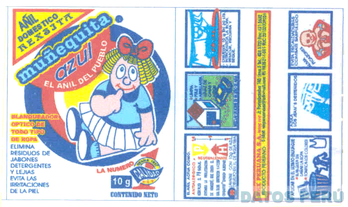 LA ENVOLTURA CONTENIENDO LA DENOMINACION REXSITA MUÑEQUITA AZUL EL AÑIL DEL PUEBLO EN SU PARTE INFERIOR LA FRASE LA NUMERO 1, ACOMPAÑADA DE LA FIGURA DE UNA MUÑECA DE TRAPO CON EL DEDO EN LA BOCA DENTRO DE UN CIRCULO, EN EL ANVERSO SE APRECIA UNA SERIE DE INDICACIONES DE LA FORMA DE SU USO Y APLICACION E ILUSTRACIONES GRAFICAS COMO DEL PH (ALCALINIDAD-ACIDEZ) Y DE UN BEBE DENTRO DE UNA TINA, TODO EN LA COMBINACION DE LOS COLORES AMARILLO, AZUL, CELESTE, ROSADO, BLANCO Y ROJO; CONFORME AL MODELO ADJUNTO
