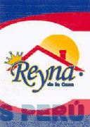 El logotipo conformado por la denominación REYNA DE LA CASA escrita en letras características con la representación estilizada del techo de una casa, a dos aguas, con chimenea y un sol, llevando la letra R la figura de una corona, todo sobre un fondo rectangular con franjas irregulares en los lados superior e inferior y en la combinación de colores rojo, amarillo, azul y azul oscuro; conforme al modelo adjunto