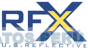 El logotipo conformado por la denominación RFX U.S. REFLECTIVE escrita en letras características, en donde se aprecia la letra X de mayor tamaño, todo en los colores amarillo y azul; conforme al modelo adjunto
