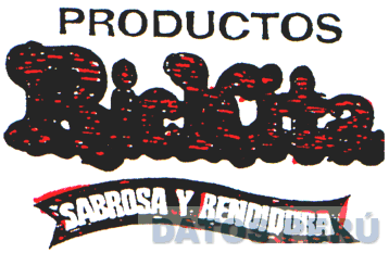 LA DENOMINACION PRODUCTOS RICKITA EN LETRAS CARACTERISTICAS DE COLOR ROJO CON SOMBRAS NEGRAS, DEBAJO UNA FRANJA ROJA CON LA FRASE SABROSA Y RENDIDORA EN COLOR BLANCO; CONFORME AL MODELO ADJUNTO,