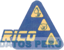 LA DENOMINACION RICO INTRODUCIDA PARCIALMENTE EN UNA FIGURA TRIANGULAR DE COLOR AZUL, QUE CONTIENE TRES FIGURAS SIMILARES DE COLOR AMARILLO, CON FIGURAS ESTILIZADAS DE POLLO, ROSTRO DE CERDO Y HUEVO, DELINEADAS EN COLOR AZUL, TODO SEGUN MODELO ADJUNTO,