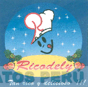 El logotipo conformado por la denominación RICODELY escrita en letras características, encerrada en un óvalo y flanqueada por cuatro círculos y la representación estilizada de hojas; debajo la frase TAN RICO Y DELICIOSO!!! escrita en letras características; sobre ello, la representación de una cara sonriente y un gorro al interior de un círculo que contiene estrellas; todo en los colores azul, celeste, rojo, amarillo, anaranjado, verde y blanco; conforme al modelo adjunto
