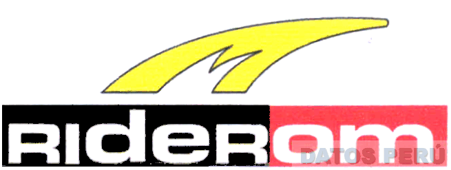 La denominación RIDEROM escrita en letras características dentro de un recuadro dividido en dos partes, y en la parte superior un diseño característico, todo en los colores amarillo, blanco, negro y rojo; conforme al modelo adjunto