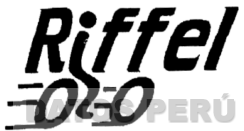 La denominación RIFFEL escrita en letras características, en donde la letra i asemeja la figura de una persona manejando un medio de transporte de dos ruedas, conforme al modelo adjunto