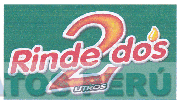 La denominación RINDE DOS LITROS 2 (sin reivindicar RINDE DOS LITROS) y logotipo (se reivindica colores), conforme al modelo