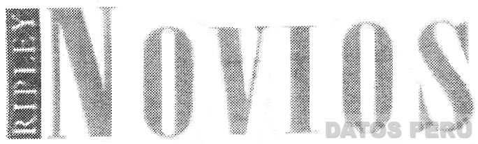 La denominación RIPLEY escrita en letras características ubicada en forma vertical encerrada en una figura rectangular junto a la denominación NOVIOS escrita en letras características; conforme al modelo adjunto