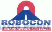 El logotipo conformado por la denominación ROBOCON SHOTCRETING SYSTEMS escrita en letras características; y en la parte superior dos imágenes irregulares; todo en los colores rojo, azul y blanco; conforme al modelo adjunto